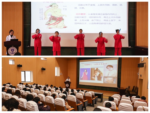 义诊服务中,各位医疗专家细致地为每一位前来咨询的师生进行专业问诊,并结合师生日常健康需求,给出合理建议和专业指导,深受师生们的欢迎。除了全方位义诊咨询和健康规划指导服务外,此次活动更是针对全校女教师和学生开设了乳腺保健知识讲座,同时现场开展了中医养生功操展示与教学,为与会师生普及了自我保健及运动养生的健康理念,受到了女教师和学生的一致好评。