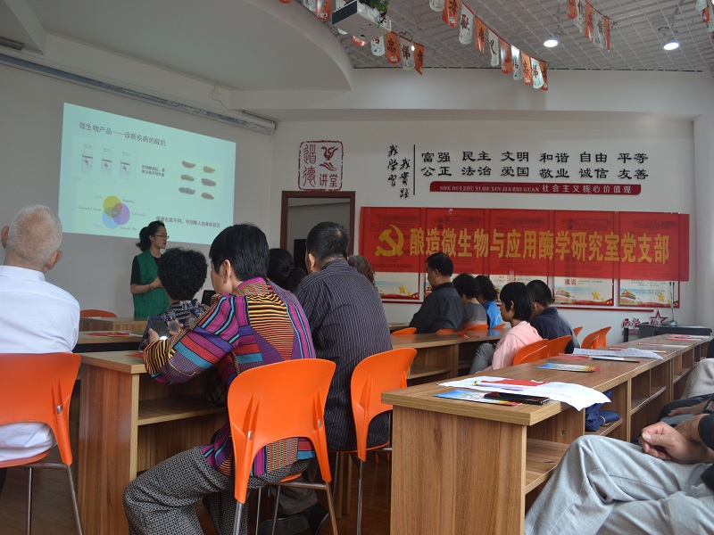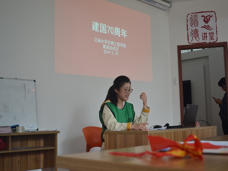 当天早上八点,同学们到达夏家边社区活动中心。首先志愿者们将社区内摆放不整齐以及未放在规定区域的自行车统一搬运到自行车停放的位置。随后同学们为社区居民开展了一场环保主题的讲座。在讲座开始之前,研究生会主席卢连登介绍本次活动的目的和意义,他介绍了江南大学生物工程学院的历史以及江南大学酿酒相关的知识;接着,酿造微生物与应用酶学党支部卢萌萌同学耐心的讲解了环保知识。她从低碳出行、减少洗涤剂的使用、垃圾分类处理、节能环保、减少噪音和文明养宠物等几个方面给基民讲解环识小贴士,希望居民们能够从自身做起,监督他人,为社区营造良好的环境。听完同学的讲解,社区居民反响热烈,纷纷表示讲解提高了他们对垃圾分类的意识,增强了自己环保意识,也指出社区存在的不足,争取今后进一步完善,做到知行合一。紧接着,项梦海同学给社区居民讲解微生物相关的知识,她通过什么是微生物、哪里有微生物、微生物是好还是坏、以及微生物给人类带来的福利。她用通俗的语言和结合生活发生的事迹给居民讲解并与居民互动。居民们也积极参与进来,对微生物有了一定的了解,也明白生活中产生与微生物相关现象的原因,增强防范微生物和利用微生物的意识。最后,居民和同学们分别拿起自带的小红旗一起欢唱“我和我的祖国”,大家热情唱出对祖国深深的热爱,愿祖国越来越繁荣昌盛。在一片欢笑声结束了本次活动。