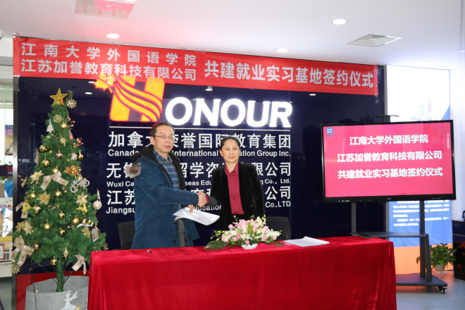 1月4日下午,外国语学院与江苏加誉教育科技有限公司共建学生实习基地签约仪式在江苏加誉教育科技有限公司会议室举行。学院院长方文开、党委副书记刘伯贤、副院长朱义华、江苏教育科技有限公司总经理孟丽敏、副总经理肖莉、教育专家Richard博士、教学总监Ruby老师参加了签约仪式。