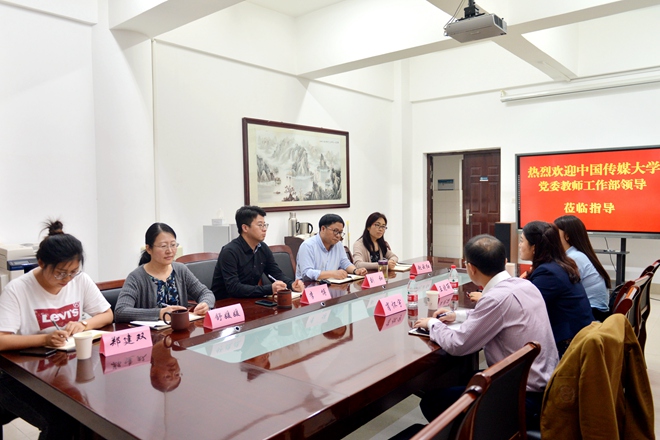 5月11日,中国传媒大学党委教师工作部部长王晓丽、副部长肖怀宇等一行来校调研教师发展工作。我校教学评估与教师卓越中心主任刘和、副主任李博,相关科室人员参加了座谈交流。
