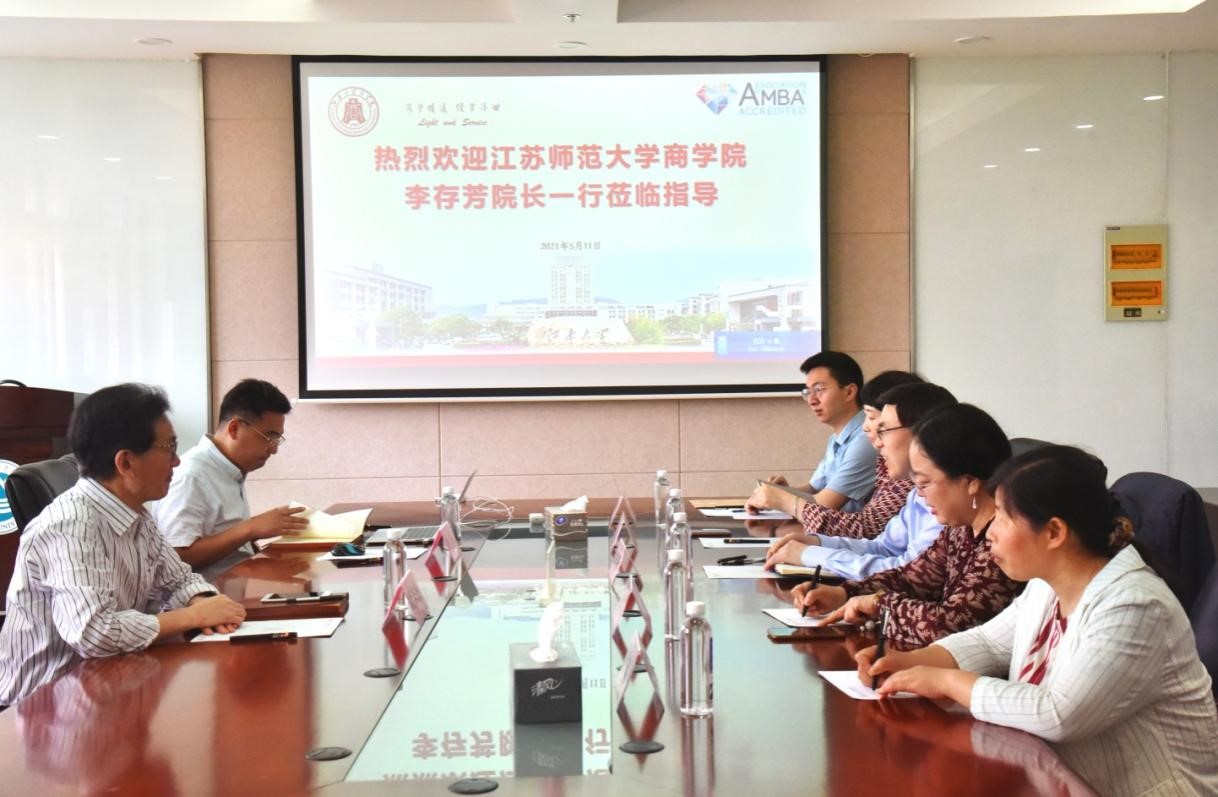 5月11日,江苏师范大学商学院院长李存芳一行五人来访我校商学院,调研交流“十四五”发展思路、目标和工作重点和主要举措等。商学院滕乐法院长、钱吴永副院长与来访嘉宾进行座谈交流。