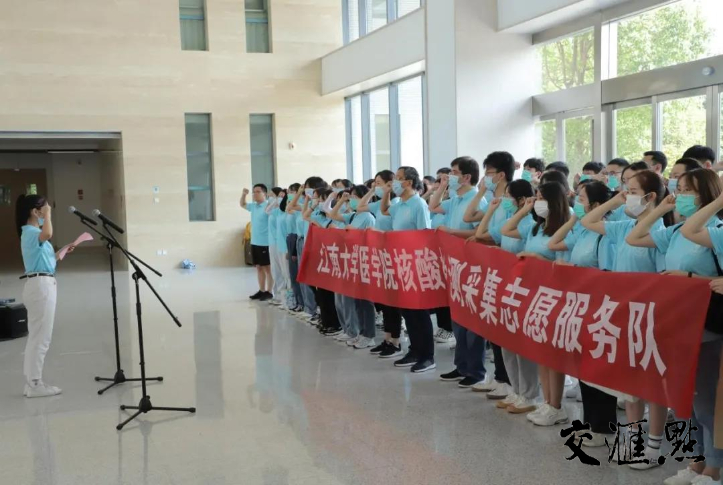 8月5日,江南大学疫情防控应急储备志愿者誓师动员大会在医学院大厅举行。招募的首批75名青年志愿者在完成核酸采样培训和个人防疫培训后,下沉无锡社区进行多项疫情防控志愿服务工作。志愿者们一句句铿锵有力的宣誓声,唱响了向疫情宣战的决心,他们即将奔赴抗疫一线,为疫情防控工作贡献青春力量。