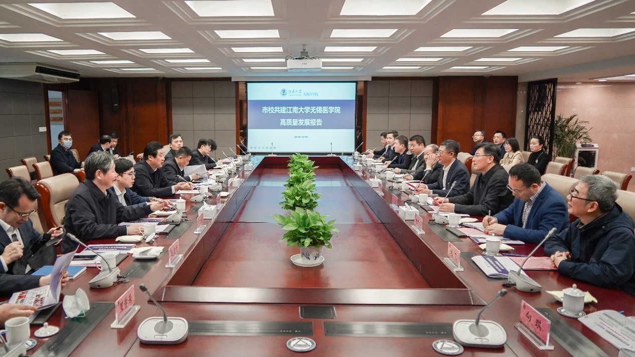 赵建军对我校近年来事业发展、市校合作共建、无锡医学院建设等取得的成绩给予了充分肯定。他指出,江南大学文化底蕴深厚、治学氛围严谨、发展态势良好、未来空间广阔,是一所与无锡产业高度契合、气质高度关联的知名高校,市校双方休戚与共、互为依托、互为支持。江南大学在近年发展中充分彰显了学校自强不息、争先创优的开创精神。他表示,市政府将一如既往全力支持江南大学发展,双方携手共建一流大学,共同谱写名城与名校共生、共兴、共荣的新篇章。一是强化目标导向,全面提升学校竞争力,全力助推江南大学、无锡医学院和江南大学附属医院在全国的排名争先进位。二是优化统筹布局,结合学校学科设置和地方发展实际,统筹谋划蠡湖校区与江阴、宜兴校区建设,优化科教资源及学科发展布局。三是加强融合发展,发挥江南大学食品、轻工、药科等优势学科与无锡地标产业、优势产业、未来产业及科创载体建设深度融合,协调配置更多资源支持医学院和附属医院共同做大做强。四是加大人才引进,瞄准无锡产业发展需求和学校发展目标,聚焦院士等国家级人才,拿出“真金白银”,进一步加大高层次人才引培力度。五是提升共建实效,发挥好联席会议和三个工作专班作用,建立健全信息专报、定期会议、年度评估等工作机制,加强动态跟踪、督查督办,确保目标任务不折不扣落地见效。