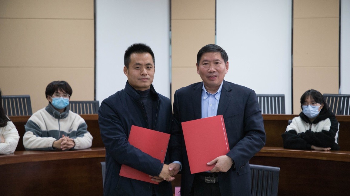 签约仪式上,浦徐进与张华林就共建实习基地与进一步合作签订共建实习基地协议书和战略合作书,徐学明代表学校向华云数据控股集团授牌。