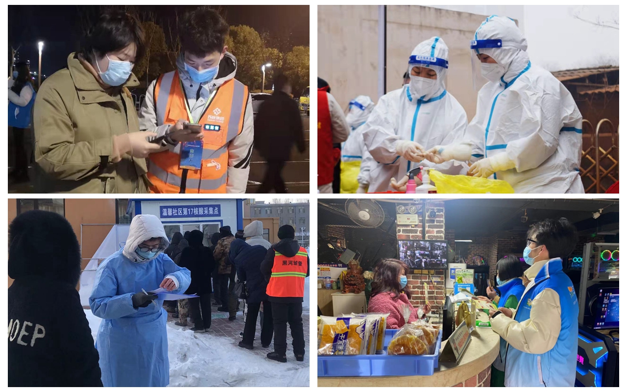 机械2103班张紫晨:寒假里她积极响应国家号召,投身家乡黑河的疫情防控工作,零下30℃的低温天气使核酸检测工作遭受诸多困难,试管里的保存液会被冻住,医护人员的面罩里也会产生水蒸气凝结,但这些问题丝毫没能阻挡张紫晨和志愿者小伙伴们的步伐,最终他们出色的完成了疫情防控志愿服务工作。她说,这段难忘的经历不仅提升了我的社会工作能力,也让我对“新时代青年”的责任与担当有了更深刻的认识。