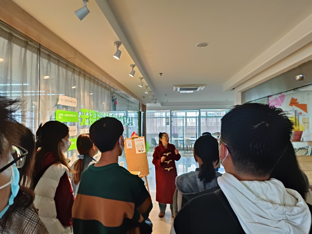活动伊始,新吴区社会工作协会支部副书记骆晨阳对同学们的到来表示了热烈的欢迎,她向同学们大体介绍了新吴社协的基本情况。无锡新吴区社会工作协会成立于2014年,是由本区从事和热心社会工作的单位和个人自愿组成的公益性、专业性社会团体,在2021年获评全区首家5A级社会组织,是2021年度无锡市领军型公益社会组织。同学们认真倾听骆晨阳对于协会当下工作的讲解,重点参观了社会服务中心、残疾人文体艺活动中心、扶残助残活动中心、公益发展园等场所。
