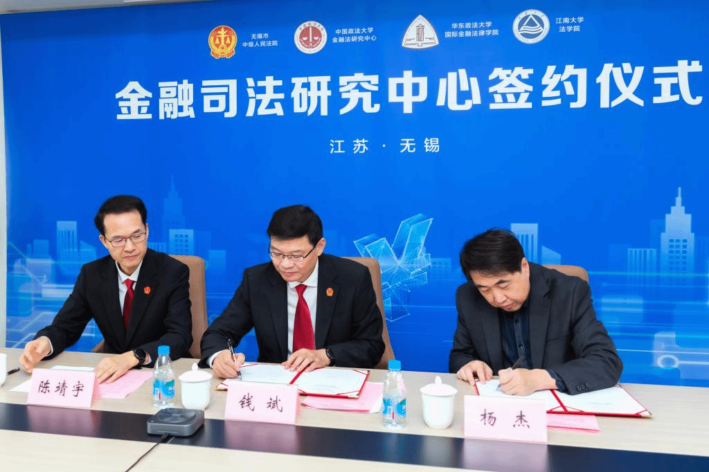 11月28日上午,江南大学法学院与无锡市中级人民法院、中国政法大学金融法研究中心、华东政法大学国际金融法律学院共同举办“金融司法研究中心”战略合作协议签约仪式。无锡中院党组书记、院长钱斌,中国政法大学金融法研究中心主任刘少军,华东政法大学国际金融法律学院党委书记朱小萍,江南大学法学院党委书记杨杰参加仪式并致辞。市中院党组成员、副院长陈靖宇主持仪式。