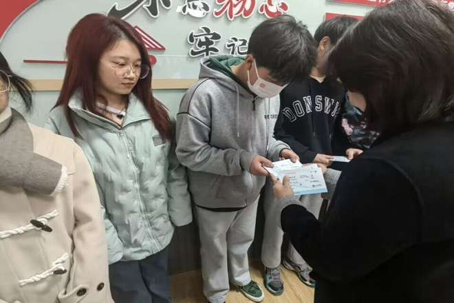 接着王珏将价值1000元的爱心车票送到8名困难生的手上。暖心同行,带爱回家,每一张车票体现了江苏正方园集团浓浓爱心和热切期盼。其余13名同学因为疫情原因未能返校,身在疫区同样感受着爱心补贴的温暖。