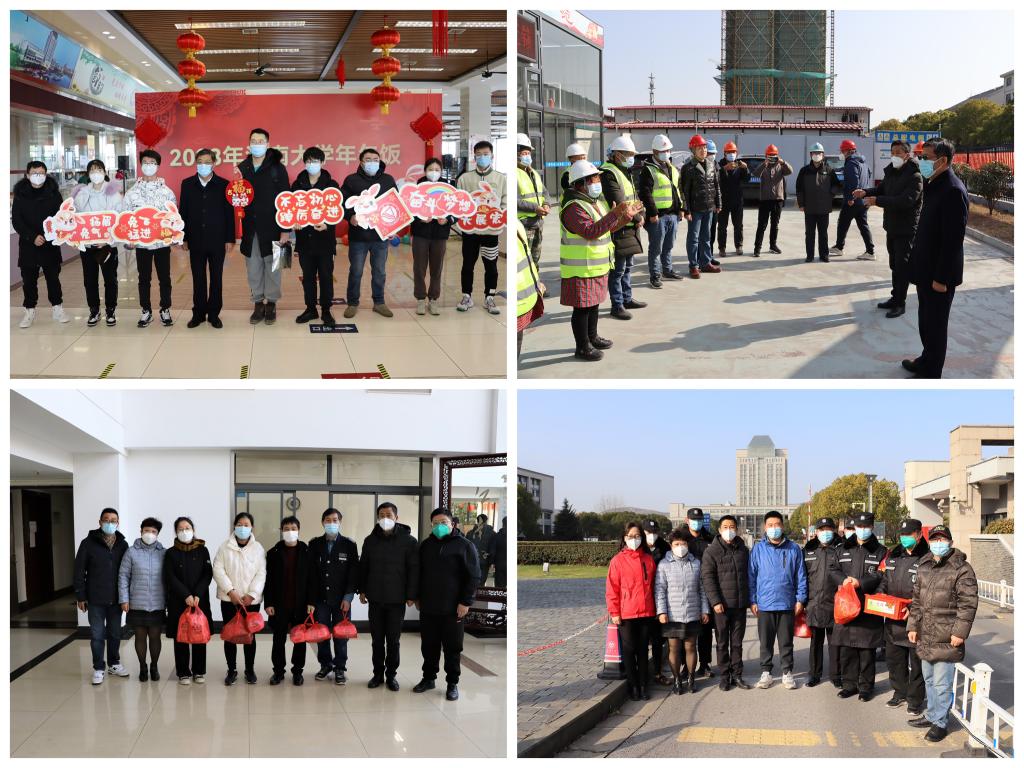 校领导一行先后来到行政楼物业值班室、东大门门岗、校医院、快递驿站、信息化中心、涓苑公寓、后勤管理处环境中心、水电运行监控中心、长广溪宾馆、江南苑餐厅、后勤管理处会议中心、橙园公寓等场所。“大家辛苦了,祝大家新年快乐!”每到一处,校领导都热情地与后勤一线职工亲切交谈,感谢他们春节期间“舍小家,顾大家”,仍然坚守在自己的工作岗位上,全力保障学校安全和各项工作的正常运转,并送上节日慰问品和“防疫包”。
