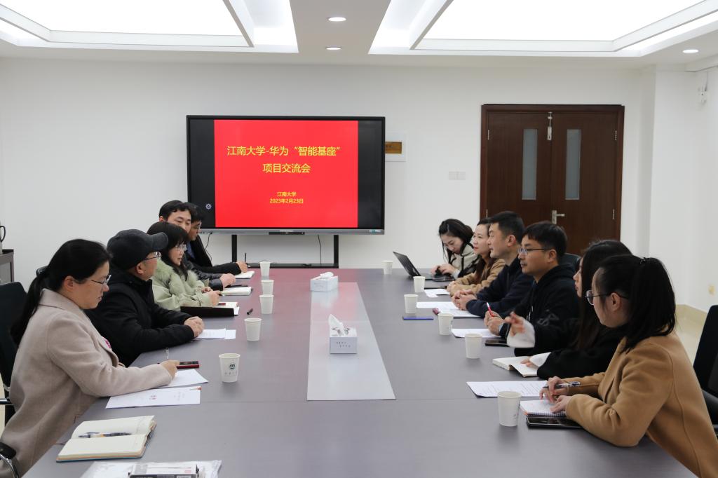 2月23日上午,学校在行政楼B306会议室召开了江南大学-华为“智能基座”项目交流会,教务处处长徐学明,副处长孙子文,物联网工程学院实验中心主任张新,华为高校科研与人才发展部总监李鹏、杨婷婷,华为昇腾生态合作总监廖义祥,华为高校科研与人才发展部经理张婷婷、杜鹃、郑芳芳和教务处相关工作人员等出席会议。