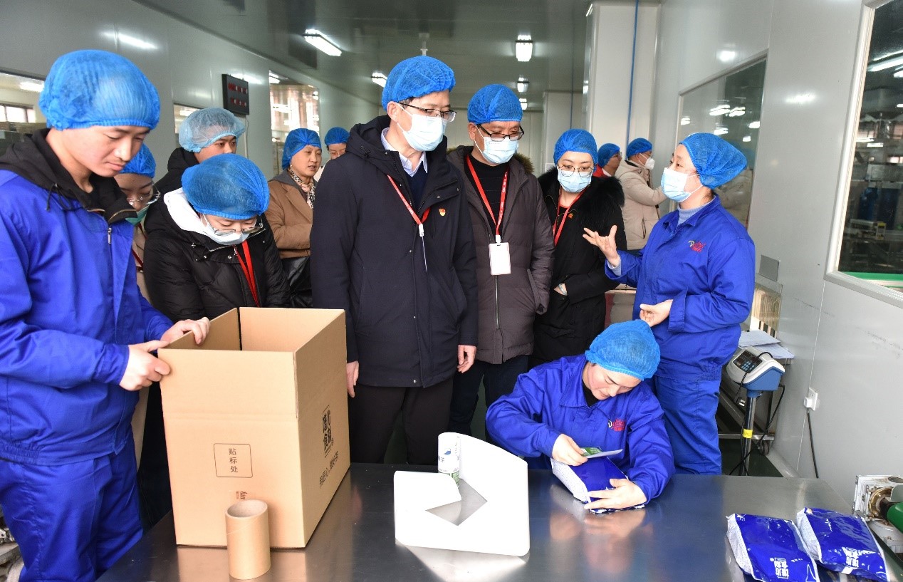 在德馨食品科技股份有限公司,总经理史文超、副总经理余日升等热情接待师生访问团。校友史文超与傅莉莉分别介绍校企双方情况,并围绕饮品消费领域研究、人才招聘及成长体系建设等话题进行探讨。访问团还参观了企业研发生产中心。