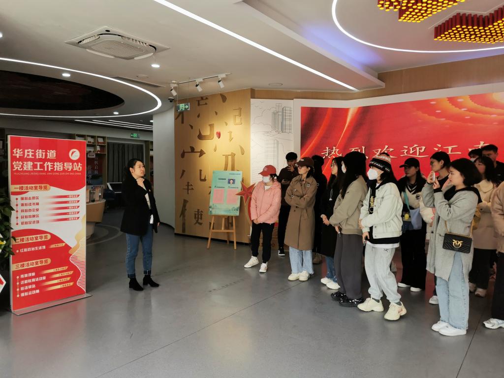 随后,在站长薛菲的陪同下参观了华庄街道党群服务中心,华庄街道党群服务中心是集服务、管理、展示、教育等多功能为一体的开放共享式党建工作平台,同时也是宣传、引导、关心、服务群众的新时代文明实践综合平台。其中,印象最深刻的就是红心政治生活馆,这里以展览的形式展现了华庄街道的历史变革和党建工作,展馆内容分为学习新思想、忆往昔荣耀华庄、看今朝兴盛华庄、“江苏好人”展等,突出展现了华庄精神即解放思想、敢为人先、艰苦创业、攀高比强,同时也指明了党建坐实了就是生产力、做强了就是竞争力、做细了就是凝聚力这一工作思路。