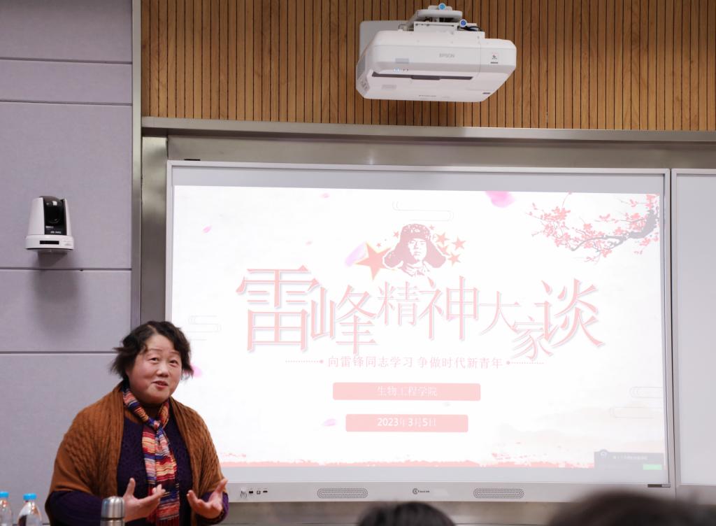 3月5日,生物工程学院邀请“高校银龄教师支援西部计划”援派教师帅桂兰与“雷锋特称团支部”酿酒2102团支部展开面对面交流,学院分团委书记许亦男主持座谈。帅桂兰从援疆的亲身经历讲起,以照片的形式,与团支部同学分享退休后选择继续投身教育事业、支援边疆的初衷,以及在这段援派经历中的收获与体悟。讲述中帅老师句句不提奉献,做的事却无不体现奉献,她以实际行动生动诠释了“一段援疆路、一世援疆情”的甘于奉献、勇于担当的崇高精神,号召广大青年身体力行投身到志愿服务之中,让雷锋精神在新时代绽放更加璀璨的光芒。“帅老师身上那份无私奉献、不计回报的品质让我深受触动,作为‘雷锋特称团支部’的班长,我更应该以身作则,带领团支部广大青年走在前列,深刻领悟雷锋精神的时代内涵,用行动诠释新时代的雷锋精神。”“雷锋特称团支部”班长赵东琳在交流中发言,其他团支部成员也踊跃参与讨论,共话“新时代背景下雷锋精神的现实意义”。