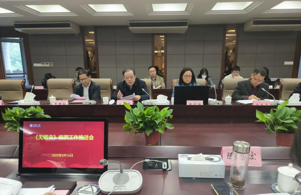 3月16日下午,《无锡史》编纂工作研讨会在行政楼举行。《无锡史》总编、校党委书记朱庆葆,校党委常委、副校长张影陆,法学院院长王君柏,江南文化研究院副院长刘大禹,马克思主义学院原院长刘焕明等参与会议,会议由刘大禹主持。