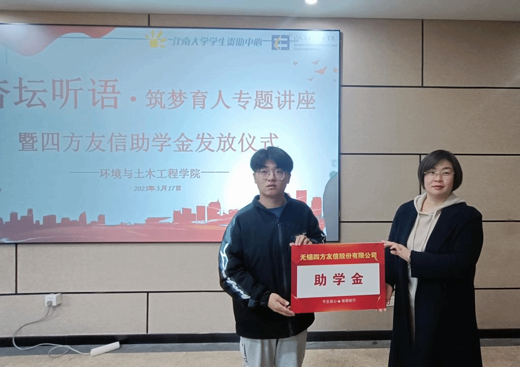 活动伊始,胡娟简要介绍了无锡四方友信股份有限公司及助学金金设立情况,感谢了四方友信公司5年来对环土学子的资助和关爱,希望同学们努力成为对社会有用的人、道德高尚的人,努力成为学术大师、兴业英才、治国栋梁,积极投身于全面建设社会主义现代化国家的伟大事业。随后,何涛宣读了2023年四方友信助学金受助学生名单。