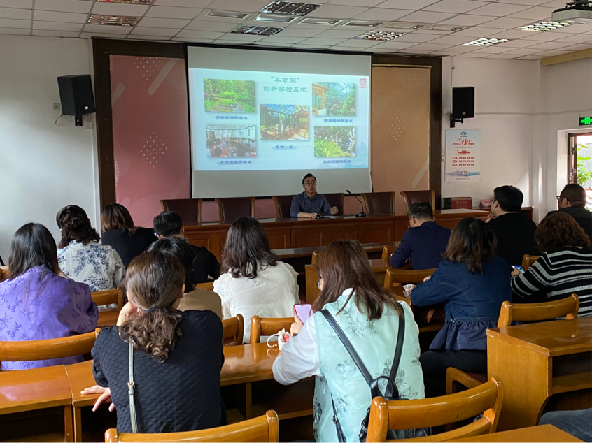 研学首站是上海市铜川学校,校长夏时勇带领学员参观校内占地一千多平方米并作为上海市中医药宣传基地的“本草园”中草药种植基地。随后夏时勇与学员分享了铜川学校建校历史、学校特色和办学成绩。该校以中草药种植基地“本草园”出发,链接德育、课程与教学,衍生出一系列以“本草园”为核心的校本课程体系。除此之外,本草实验室、本草数字资源库开发、社区课程、慈善义卖及中医研学等相关活动拓展了校本课程的外延,延伸了学生的认知边界,更推动中医药传统文化走进课堂,走向社区。上海铜川学校充分发挥资源整合能力及富有底蕴的校园文化建设给学员留下了深刻的印象。
