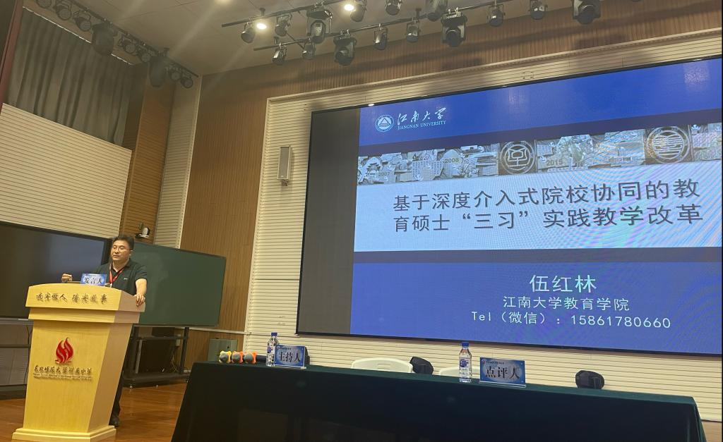 大会主要围绕教育硕士实践能力培养、实践教学体系等方面进行交流。会上,伍红林作了《基于深度介入式院校协同的教育硕士“三习”实践教学改革》报告,对学院教育学科的betway必威官方网站app、社会服务与教育硕士实践能力培养间三位一体的关系进行了详细阐述,针对教育betway必威官方网站app与教育实践改革割裂、教育理论教学与职前教师实践能力培养两张皮的现实问题,提出教育学科的理论研究者在日常需坚持深度介入基础教育改革,与地方中小学开展面对面的深度合作,将学科发展的根扎入地方基础教育土壤之中,在此基础上才能真正促进理论研究与实践变革双向建构、社会服务与人才培养的内在融通,推动地方优质教育资源向betway必威官方网站app、人才培养资源的转化。在这一过程中,建立院校协同培养教育硕士的制度与机制固然重要,但大学理论研究者与中小学教师在深度协同中形成的情感联结也很重要,由此才能真正实现教育硕士见习、实习、研习在中小学的日常化、持续化和深入化。报告内容得到与会者的共鸣,会后还进行了进一步深入交流。