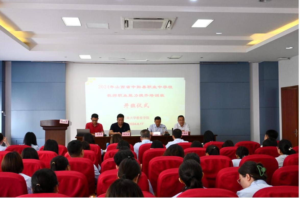 为提升中职院校自身职业素质,勇担职业教育的历史性、全局性、战略性使命,6月17日上午,山西省中阳县职业中学校教师职业能力提升培训班在江南大学田家炳楼209会议室顺利开班。中阳县人民政府副县长任海涛、中阳县职业中学校校长刘海波、江南大学人文学院、教育学院副院长(主持工作)伍红林及中阳县职业中学校50名教师参加了开班仪式,仪式由江南大学人文学院、教育学院副教授钱逸舟主持。