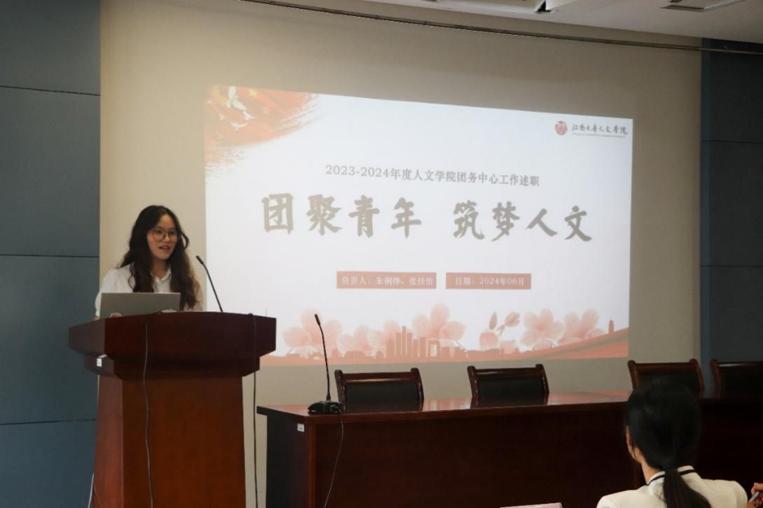 人文学院学生会、研究生会、团务中心、新媒体工作室、学习发展中心、学生事务中心、党务中心、心语心悦工作室八个学生组织负责人结合2023-2024学年工作情况展开述职。