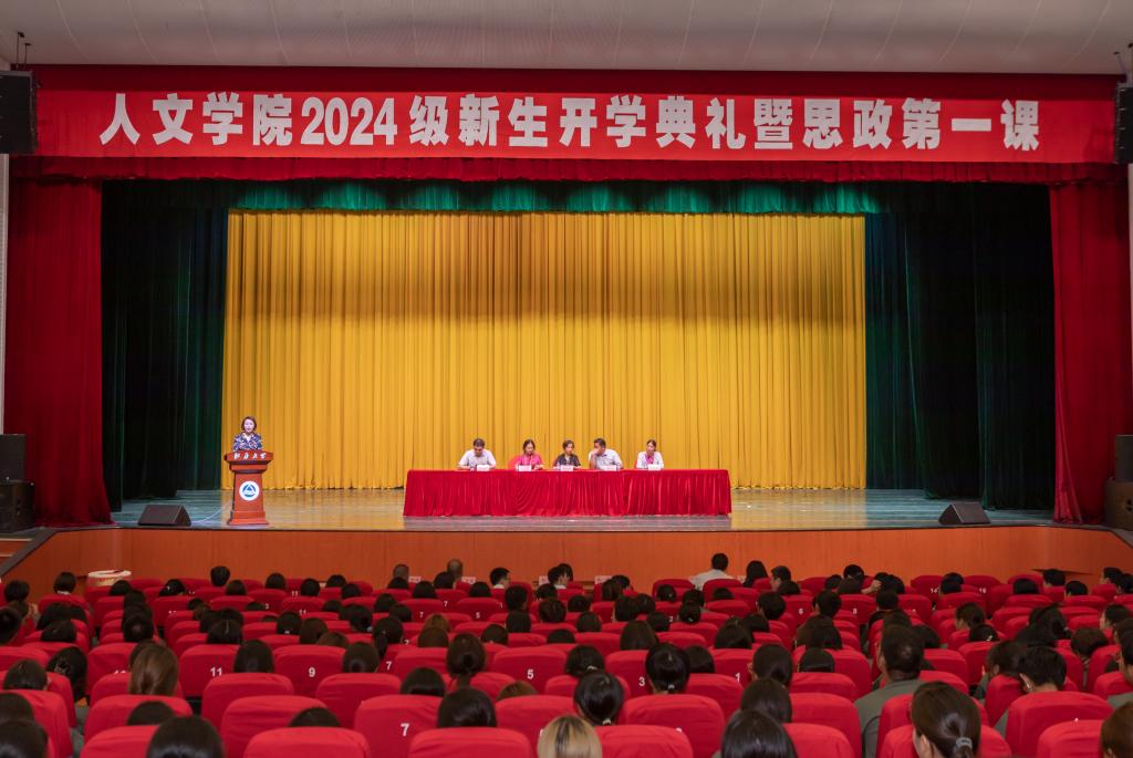 秋光为序,筑梦启航。9月11日下午,人文学院2024级新生开学典礼暨思政第一课在文浩馆观众厅举行。人文学院党委书记姚剑英、主持工作副院长伍红林,副院长王芳、于书娟、马志强出席典礼,各系负责人、新生班主任、教师代表,优秀校友代表、在校生代表以及2024级本研新生共同参加典礼。典礼由学院党委副书记、副院长徐璐主持。