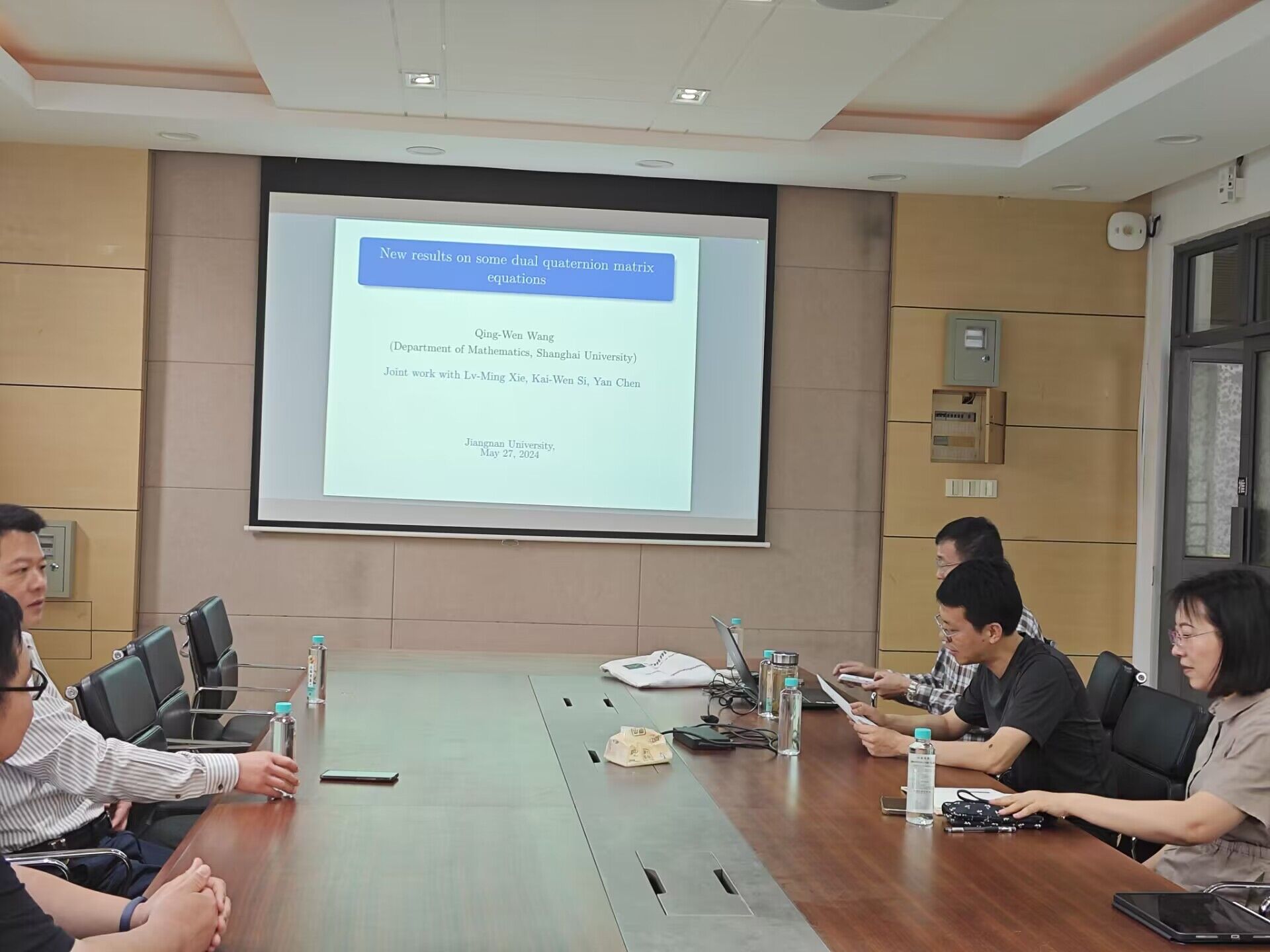 5月27日上午,上海大学王卿文教授应邀在钱伟长楼201会议室作了题为“New results on some dual quaternion matrix equations”的学术报告。报告会由理学院副院长陈晶教授主持,理学院部分教师与研究生聆听了报告。