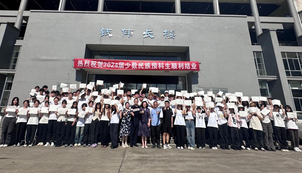 阿衣斯坦宣读2024届少数民族预科班优秀结业生表彰决定。刘朗为“优秀结业生”获奖同学颁发荣誉证书,领导嘉宾为全体预科生颁发结业证书。优秀结业生代表昝永哲、杜晓宇依次发言,表达了对学校和学院领导、老师们悉心教导和关心关爱的感激之情,并表示将继续发扬预科阶段养成的良好习惯和优良作风,坚定理想信念,志存高远,将个人的成长与民族的发展紧密结合起来,为实现中华民族伟大复兴的中国梦贡献自己的力量。最后,预科班班主任寄语,全体师生合影留念。
