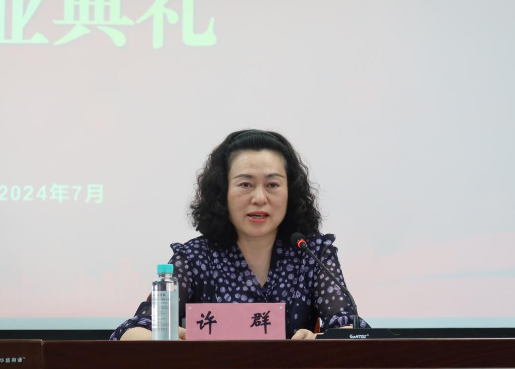 典礼在庄严的国歌声中拉开序幕。许群代表学院向2024届预科班的同学们顺利结业表示热烈祝贺,向精心培育预科班学生成长的领导、老师们致以由衷的感谢,并对即将升入本科开启新征程的预科生提出三点希望:一是热爱祖国,维护民族团结。希望同学们铸牢中华民族共同体意识,树立正确的祖国观和民族观,不负党和国家的期盼,坚决维护统一的多民族国家。二是志存高远,担当时代重任。希望同学们把自己的青春奋进融入中华民族伟大复兴的历史鸿流之中,努力成为祖国的栋梁之才。三是脚踏实地,练就过硬本领。希望同学们得理学精神之浸染,成为扎实严谨的理学风格的代言人,努力掌握真才实学,成长为不断奋进的时代新人。