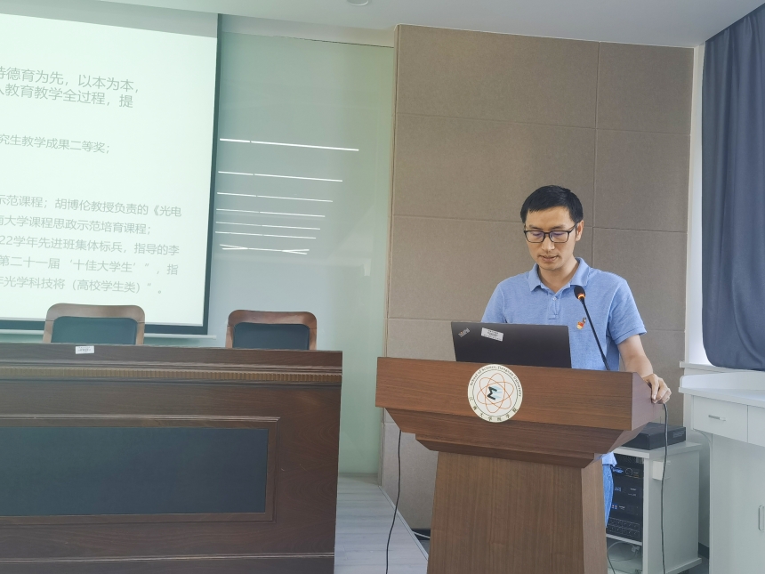 党课结束后,董小平宣读“先锋工程”表彰决定,光电信息科学与工程系教工党支部、阿衣斯坦、王跃科、谢文龙等10位党员教师分别获得“先进党支部”和“优秀先锋示范岗”荣誉称号。获奖党支部书记胡征达代表支部做交流发言,他系统阐释了支部的建设思路、工作模式和路径措施,并就近年来支部的建设过程、支部党员在党建思政、教学科研等方面取得的成绩进行了简要汇报。