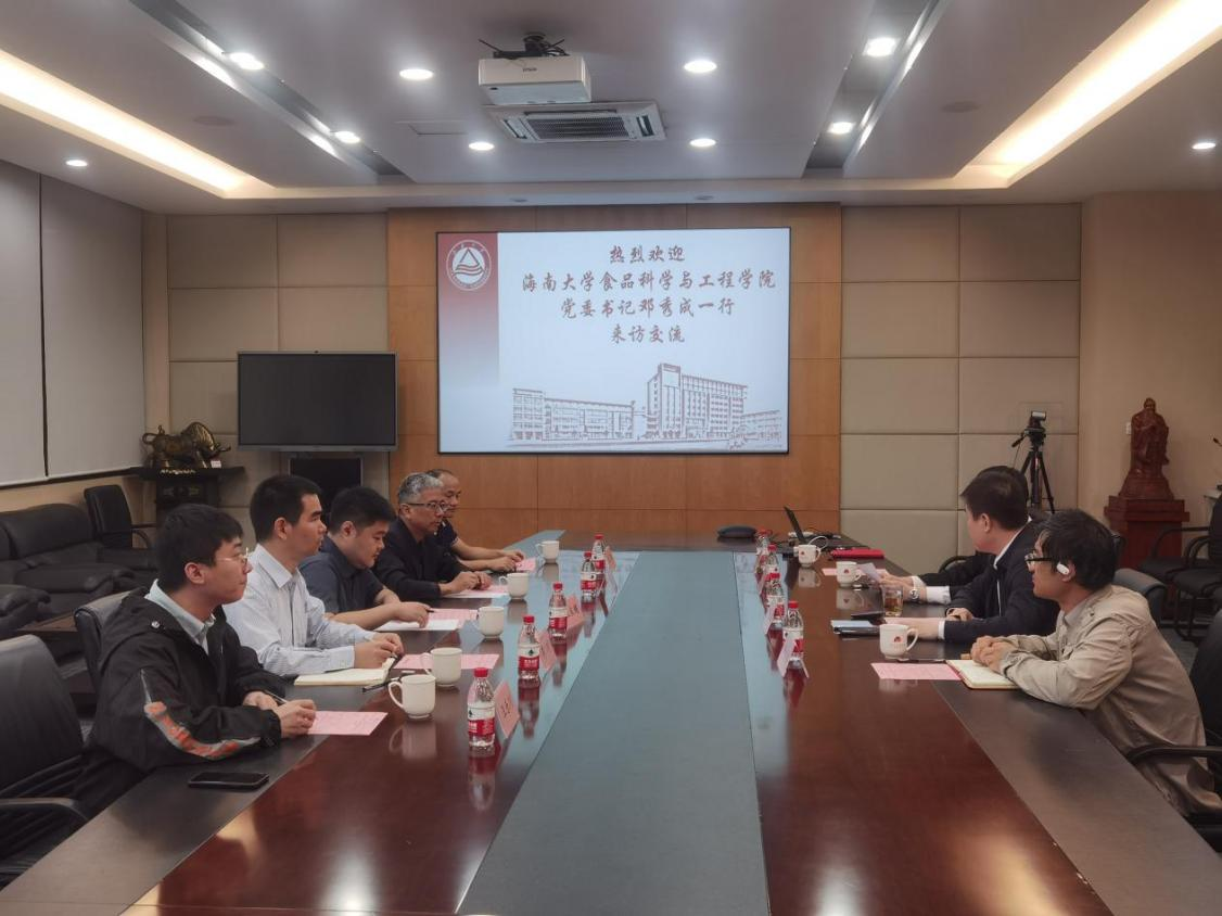 4月12日上午,海南大学食品科学与工程学院党委书记邓秀成,主持工作副院长张家超,副院长李川,副教授王露、汪乐川来食品学院交流访问。食品学院院长范大明,副院长翟齐啸,实验室主任王文龙,专职组织员朱伟接待来访。
