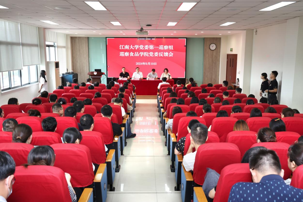 9月19日上午,学校党委第一巡察组巡察食品学院党委反馈会在学院D912报告厅举行。校党委书记、巡察组组长吴正国,校长助理兼党委组织部部长、巡察工作领导小组成员张梁,巡察组副组长、校纪委委员、党委教师工作部部长张海峰,校纪委副书记、党委巡察工作办公室主任丁文勤及巡察组成员出席会议。食品学院、国家功能食品工程技术研究中心、食品科学与资源挖掘全国重点实验室党政领导班子成员,全院教职工参加会议。会议由学院党委书记傅莉莉主持。