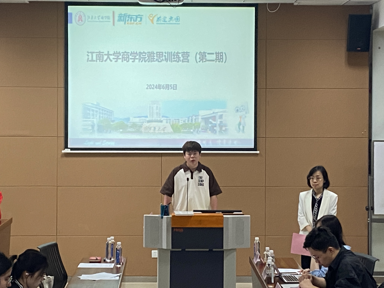 为提高学院学生英语学习动能,开阔学生国际化视野,提升学生海外升学率,营造浓厚的国际交流氛围,近日,江南大学商学院雅思训练营(第二期)顺利开营,院党委副书记兼副院长徐静,新东方前途出国有限公司刘铭雅,雅思专职教师秦昊、阴彩仙、李雨桐和商学院20余名学生参加开班仪式。开班仪式由国际交流辅导员吴松老师主持。