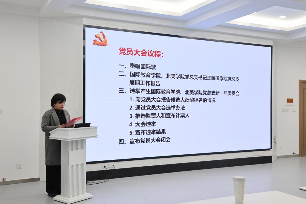 1月8日下午,国际教育学院、北美学院党员大会在文科楼A206召开。学院全体党员出席会议,会议由学院党总支副书记王胤主持。