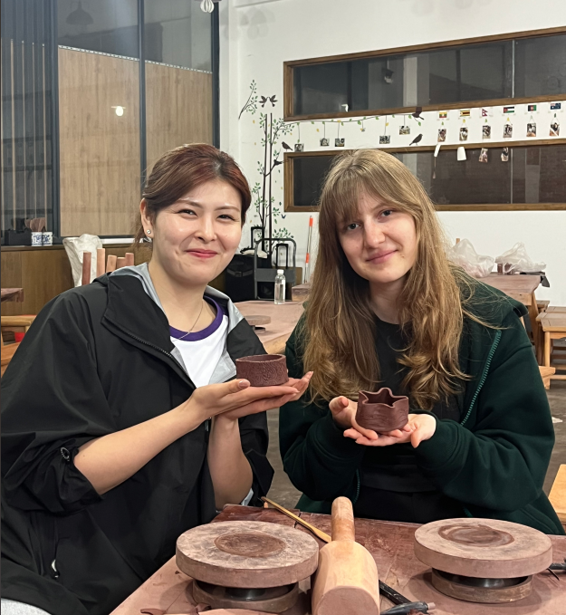活动第二站,留学生们参观了利永紫砂博物馆,领略了宜兴紫砂的百年变迁史,感受到宜兴厚重的紫砂文化底蕴。在导游的讲解下,同学们参观了明清展厅、民国展厅、当代展厅等七个参观区域,纷纷赞叹紫砂工艺品的精妙。参观过程中同学们积极互动,和导游请教怎样欣赏紫砂艺术品、怎样购买到质量上乘的紫砂壶等,现场气氛活跃、笑声不断。最后,在陶艺老师的指导下同学们动手体验了制作紫砂的匠心艺韵,大家兴趣盎然,精心设计,一个个妙趣横生的紫砂作品诞生了。
