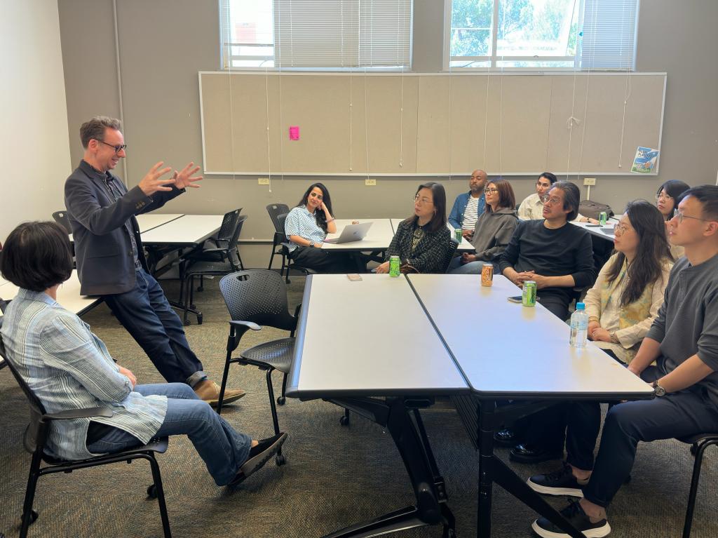 当地时间5月3日下午,江南大学设计学院师生代表团在加利福尼亚大学戴维斯分校(University of California,Davis)与该校的教授及研究生们共同分享学术研究讨论。
