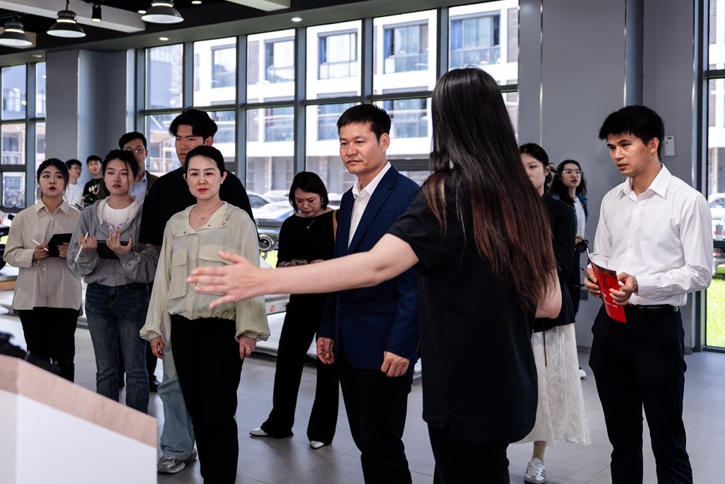 5月10日下午,设计学院党委副书记兼副院长江琳娜、副院长胡伟峰、辅导员刘鑫、张凌雁及28名本科学生赴雅迪集团,雅迪集团工业设计总监程煌仁、人力资源管理中心总助俞萍、全球产品及技术HRBP部长陈芳芳、人力资源管理中心招聘部长蔡陈樱等热情接待了师生一行。