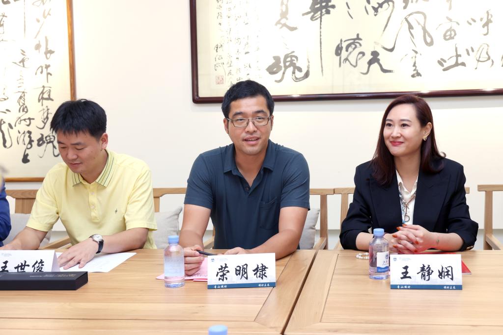 签约仪式后,院会双方就学生培养、学校合作等问题进行了深入交谈。朱飞对香港无锡商会捐资助学表示感谢,希望今后双方在人才培养方面加强联系和交流。荣明棣指出,通过两地的合作,要合力把优秀的设计作品推向国内,走上国际,让国际视野看到中国的设计力量。王静娴指出,希望在年轻化的商会会长带领下,吸纳更多年轻人的作品,通过两地的大型艺术展览活动,旅游发展合作,科创领域的艺术智能创作,同时也希望能促进两地高校的合作。学院副院长周林提到,设计学院正在寻求一个广泛的跨区域合作,整合设计的资源,通过联合展览等方式同国际一流高校的设计专业进行交流合作。江琳娜提到,在今年的2月份,设计学院组织三十多名学生前往香港理工大学前去交流,通过看展览和课程学习的方式,也在一定程度上提高了学生的眼界素养,未来也希望能通过香港无锡商会的渠道,加强与香港高校的合作交流。