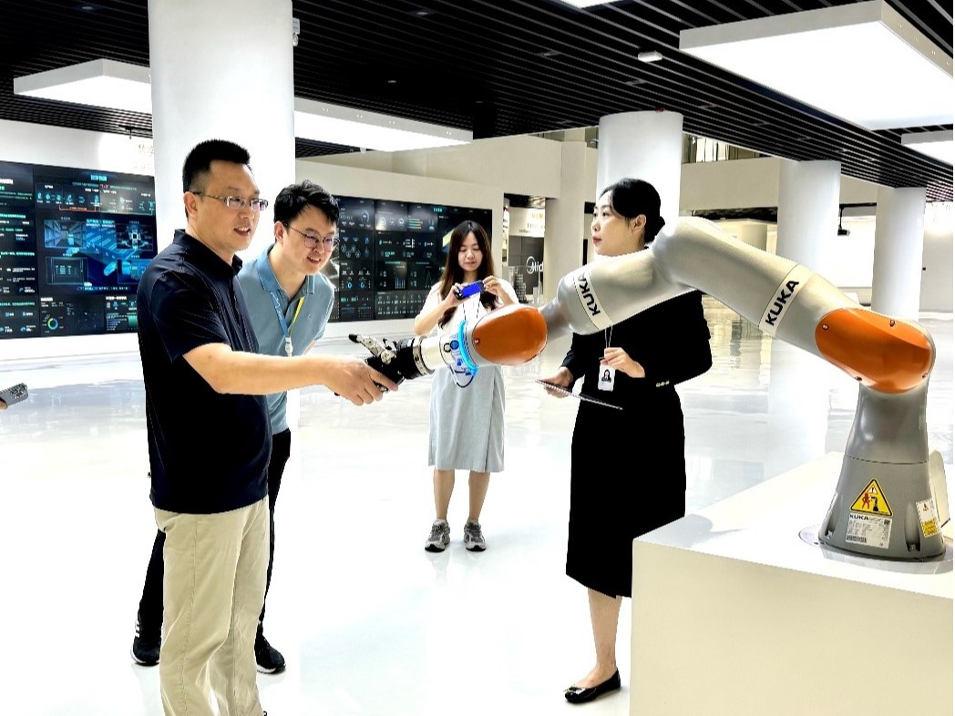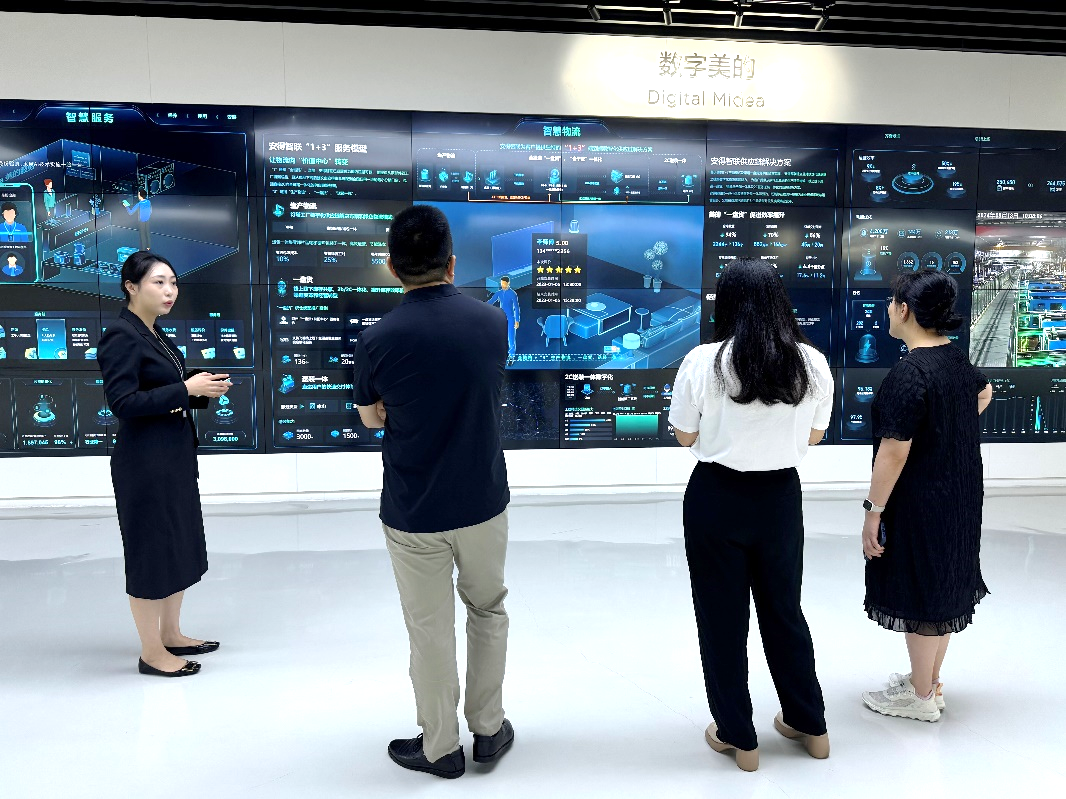 赵磊首先对江南大学设计学院一行表示热烈欢迎,并简要介绍了美的集团近年发展情况与未来科技部署。美的集团目前已成为集智能家居、工业技术、楼宇科技、机器人及自动化、数字化创新业务五大板块为一体的全球化科技集团,连续多年入选《财富》世界500强,2024年排名上升至第277位。美的集团通过数字化、智能化科技创新,10年间在数字化转型领域投入了超过170亿元,成立AI创新中心、美的软件工程院、建立美的云数据中心、成立隐私计算联合实验室,成为中国轻工业“数字化转型的典型样本”。美的对数字化探索已经进入了“深水区”:以统一、可靠、安全、高效的数字化底座,构建智慧家居、智慧楼宇、智慧能源、智慧出行、智慧医疗、智慧物流、智能制造等“北斗七星”型数智领域。