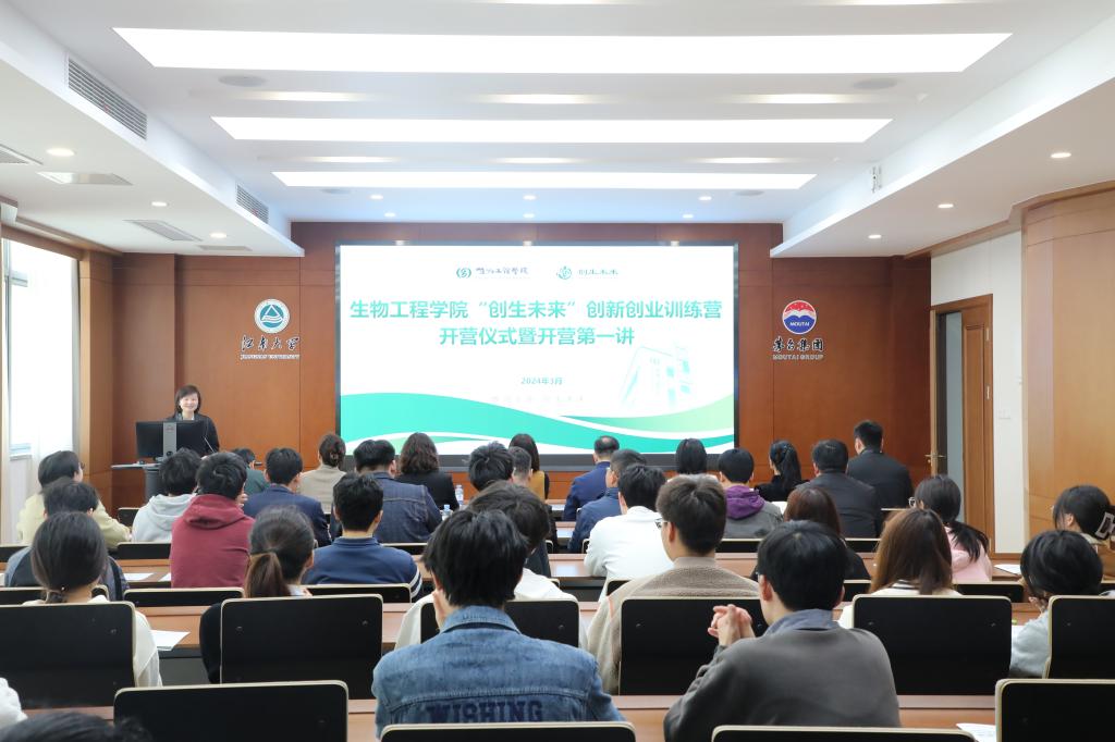 为深入推进大众创业、万众创新,推动创新创业教育融入人才培养全过程,切实提高学生的创新精神、创业意识和创新创业能力,培养“敢闯会创”的新时代创新型高素质人才,3月22日,生物工程学院“创生未来”创新创业训练营开营仪式暨开营第一讲在茅台厅会议室举行。生物工程学院党委书记程捷音、江南大学国家大学科技园副总经理陈雪梅、江南大学国家大学科技园副总经理张翼、校学生工作处副处长单筱婷、校教务处副处长吴宝锁、校团委副书记吴垚、校教务处实践教学中心科长杨宏华、校学工处就业创业指导中心副主任孙博文、溢生食品科技(无锡)有限公司总经理贯中正、生物工程学院专家导师代表、全体辅导员以及营员学生代表等50余人参会。会议由生物工程学院党委副书记兼副院长林丹主持。