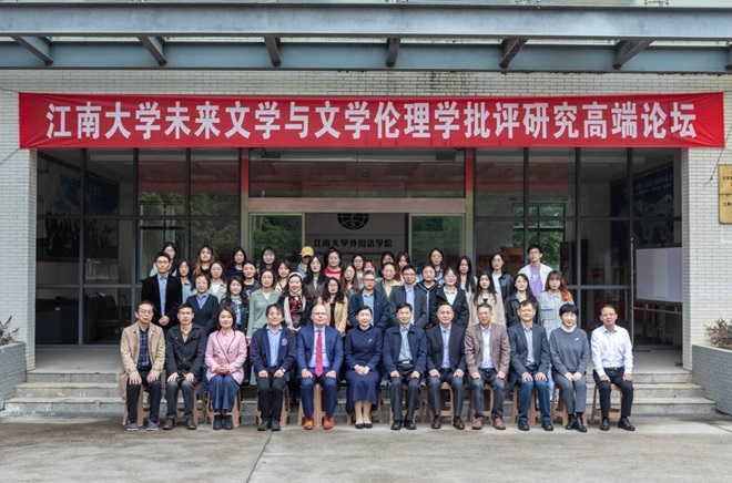 4月12日,由江南大学外国语学院、广东外语外贸大学未来人文实验室、浙江大学世界文学跨学科研究中心主办,《外国文学研究》《山东外语教学》《外国语文研究》《江南大学学报(人文社科版)》杂志编辑部、外语教学与研究出版社、高等教育出版社协办的“未来文学与文学伦理学批评研究高端论坛”在江南大学外国语学院成功召开。江南大学党委副书记刘淼、广东外语外贸大学/浙江大学教授聂珍钊、华中师范大学教授苏晖、浙江大学教授杨革新、上海交通大学教授尚必武、复旦大学教授Sandro Jung、华中师范大学教授罗良功、宁波大学教授王松宁、山东师范大学教授王卓、广东外语外贸大学教授张欣、广东外语外贸大学教授刘茂生、华中科技大学教授陈后亮等众多国内外知名专家学者共同出席了论坛。开幕式由江南大学外国语学院院长方文开主持。