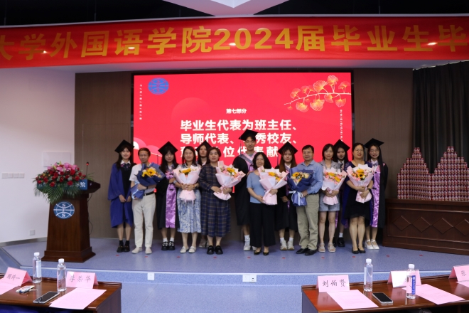 毕业生为班主任老师、导师代表献花