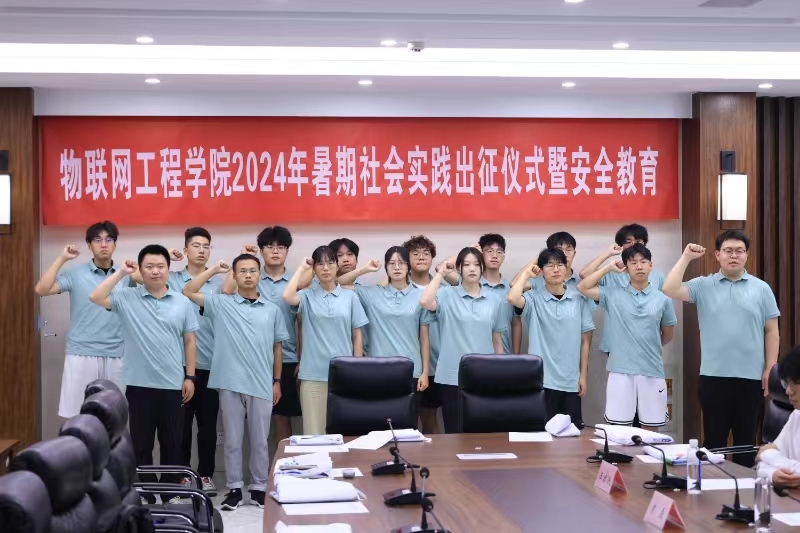 仪式上,屈跃宽宣读了《物联网工程学院社会实践文明公约》。院社会实践重点团队代表霍雷霆同学带领2024年暑期全体实践团进行出征前宣誓。