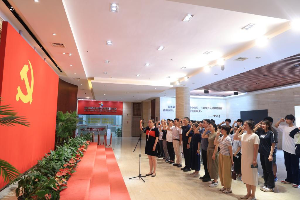 首先,全体党员在院党委副书记、副院长孔丽丹带领下重温入党誓词,面对鲜红党旗,庄严宣誓,表达了为党的事业奋斗终身的坚定决心。接着,在讲解员的引导下参观启航、星火、圣地、烽烟、黎明、奋斗、复兴、丰碑等8个专题展厅,518幅珍贵图片资料,全面直观地展示了中国共产党领导中国人民在革命、建设、改革各个时期所形成的红色精神,对中国共产党波澜壮阔的历史和砥砺奋进的历程有了更为直观深入地了解。全体党员来到革命先烈群像前,为烈士们献花,并集体朗诵“缅怀”诗篇。在培训教室,大家集体观看《红色之路》和廉洁教育专题视频。