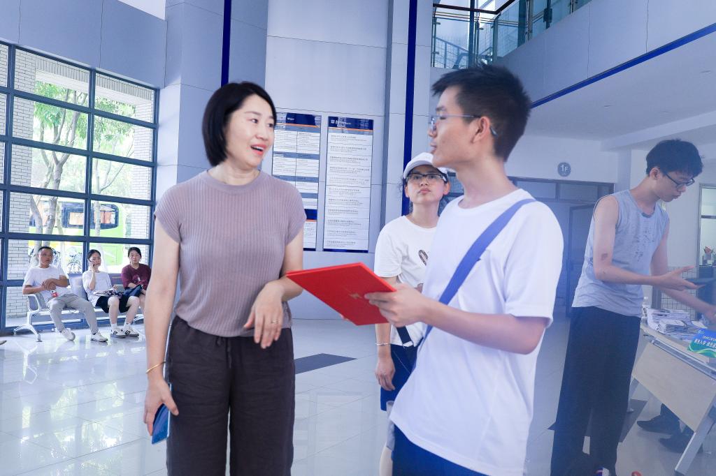 报到现场,设置了三个特色体验区。展板区设置“未来签到处”创意签名墙,为刚刚踏入校园的新生锚下独特而富有意义的起点;“科创体验区”汇聚了物联学子在历届科创竞赛中的杰出成果,新生亲自上手操作体验,点燃科创热情;“心愿抽奖区”通过手写寄语的温馨方式赋予每位新生一次特别的抽奖机遇,一笔一划承载着对未来的美好祝愿,精心设计的文创奖品更传递了深厚的学院文化,让新生收获归属感与认同感。此外,学院还组织起一支热心的志愿者服务队,穿梭于报到现场与宿舍园区,耐心地向新生提供引导、指示和答疑等服务,用实际行动传递着学院最真挚的关怀与温暖的问候。