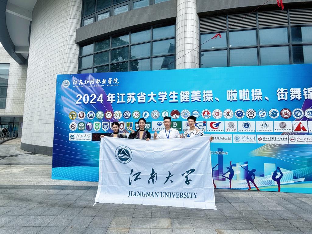 在体育部邓永佳老师的带领下,来自人文学院的戎慈睿、熊莉芳和外国语学院的陈芯蕊三名同学参加了本次比赛。赛场上,运动员们精神饱满、激情四射,在动感十足的音乐中翩翩起舞,将卓越的技巧动作与身体灵活性完美融合,展示了江南学子的青春活力。经过激烈的角逐,我校高分摘得男子单人操、啦啦操双人爵士两项桂冠!