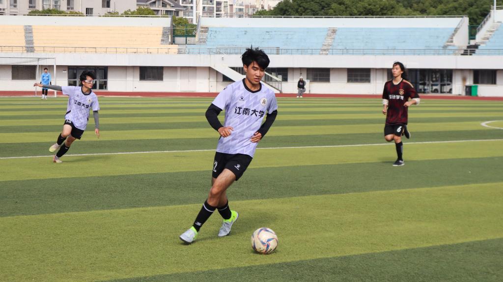 开幕式结束后,商学院和设计学院足球队作为首场对决战队进场,拉开了本次比赛的帷幕。深秋的运动场上热情满满,队员们默契配合,迅速进入比赛状态。接下来,将由15支队伍、300名队员参加为期两个月的比赛,共同角逐大小学院两个组别的冠军。期待各支参赛队伍在绿茵场上挥洒汗水、追逐梦想,赛出风格、赛出水平、赛出友谊,以精彩的比赛展现江南学子团结协作、敢于拼搏的精神风貌。