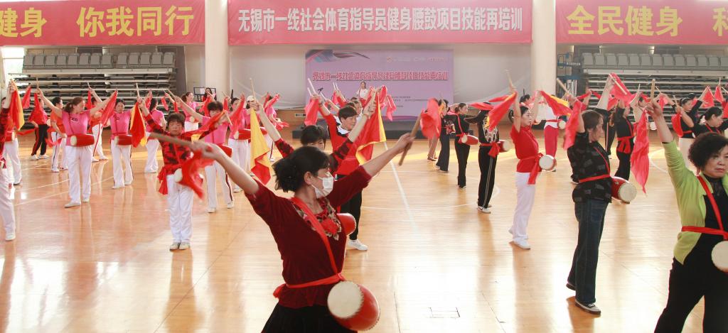 近日,由无锡市体育局主办,江南大学和宜兴市文体广电和旅游局承办,无锡市社会体育指导员协会、宜兴市社会体育指导员协会协办的“无锡市一线社会体育指导员健身腰鼓项目技能再培训”在宜兴市体育中心训练馆成功举办。