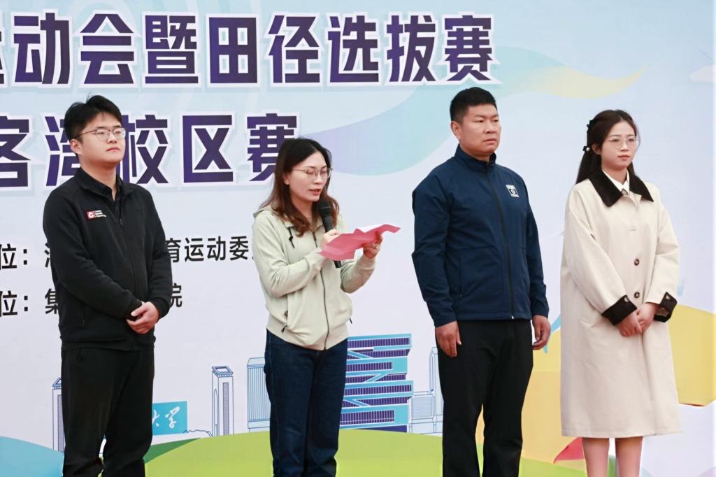 糜海燕致开幕辞,她向为本次比赛辛勤付出的裁判员老师和同学表示衷心感谢,鼓励运动员们要发扬高尚的体育精神,展现团结协作与奋勇拼搏的风貌,赛出优异成绩,赛出快乐心情,赛出健康风采。随后,运动员代表徐正涛和裁判员代表黄陈健庄严宣誓,承诺将以公平竞争、公正裁决的原则参与运动会。赵来安宣布比赛正式开幕。