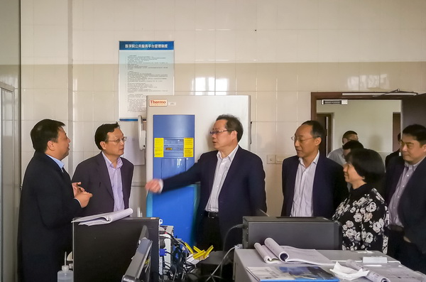 4月23日上午,校党委书记朱庆葆率党委办公室、人事处、研究生院等相关职能部门负责人前往药学院走访调研。