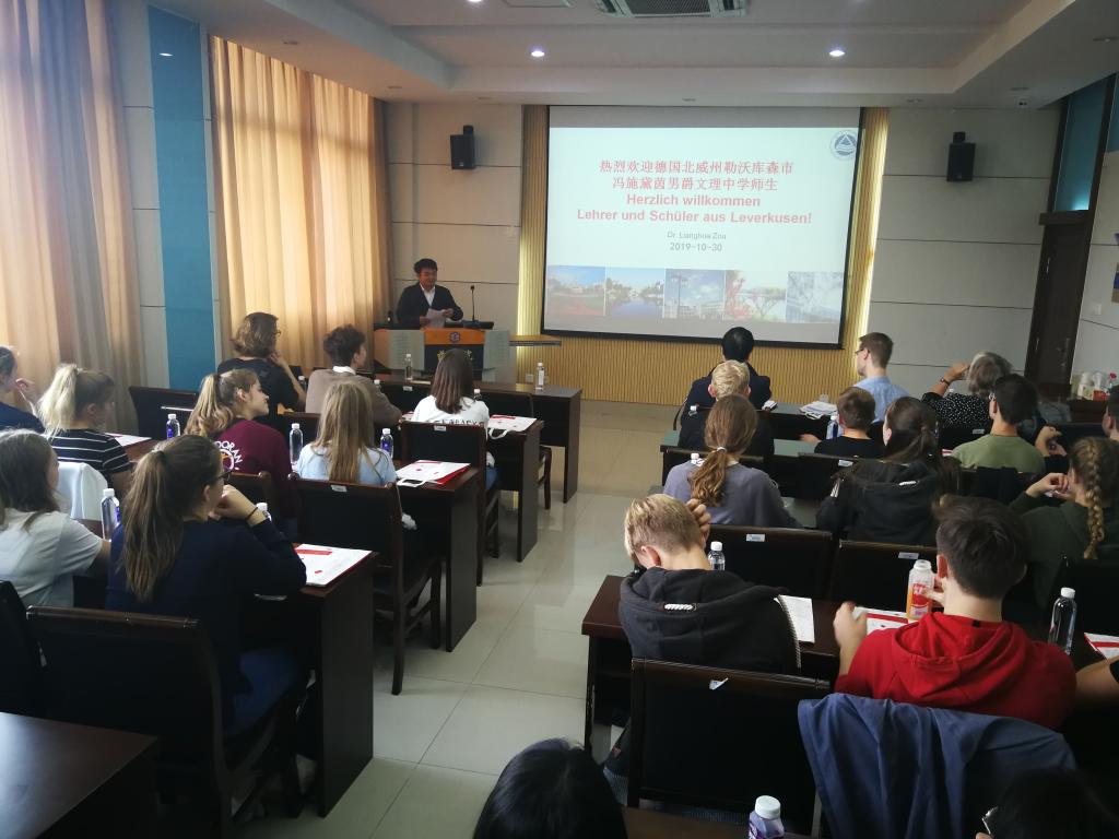 10月30日上午德国北威州勒沃库森市冯施黛茵男爵文理中学师生一行20余人来学院交流访问,院党委书记姚剑英、留德归国博士邹亮华副教授及大学生代表接待了德国代表团一行。