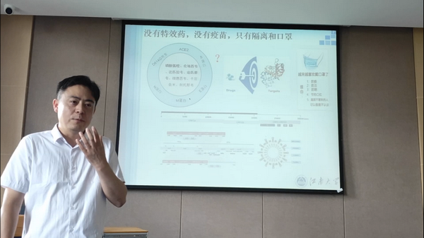 王教授围绕“领跑还是跟跑——制药人在新冠疫情后的一些思考”为主题,从年初出现的新冠疫情作为话题导入,阐述了我国对于这场突如其来的疫情所做的措施,同时讲述了国外对于疫情的应对措施,可以看出我国对于这场全人类的灾难做出了巨大的贡献。王教授从专业的角度为在场同学讲述了SARS-COV2这个病毒的相关知识与现有的对病毒的认识,使同学们对这个病毒有了更为深入的认识和了解。